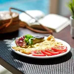 varma och kalla drycker i poolbaren, utmärkt service. ett brett urval av kaffe och flingor till frukost.